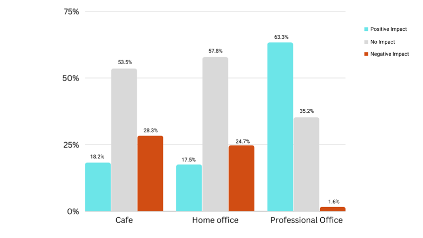 With the advent of home offices and working from other locations such as a café becoming prominent, a professional office is still deemed to create the most positive impact.