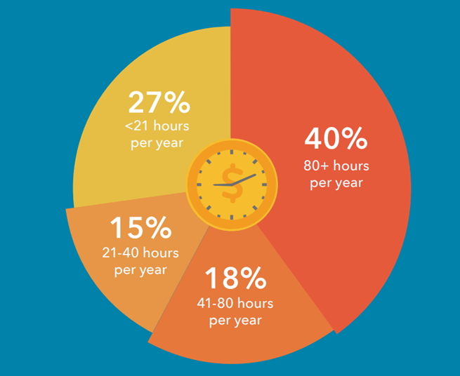 According to research, small businesses spend a total of 15-16 hours per week performing administrative tasks. This equates to two full working days per week, or 19% of their time. As a monetary figure, that's around $14,857 being lost every year.